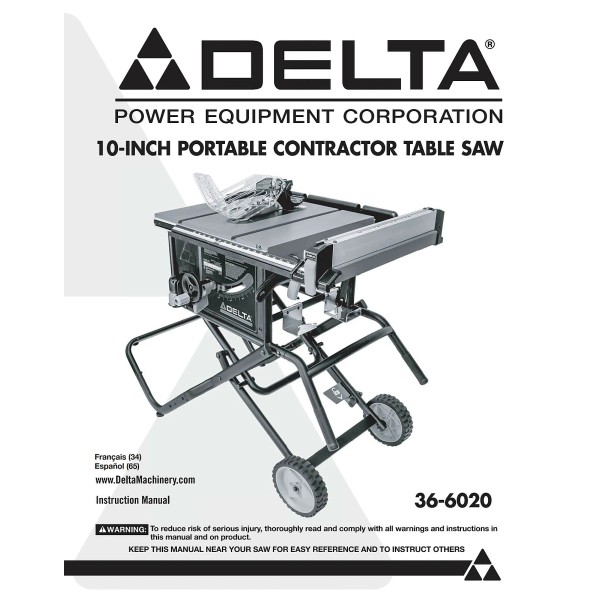 Delta 36-6020 10" Portable Contractors Table Saw Instructions Manual