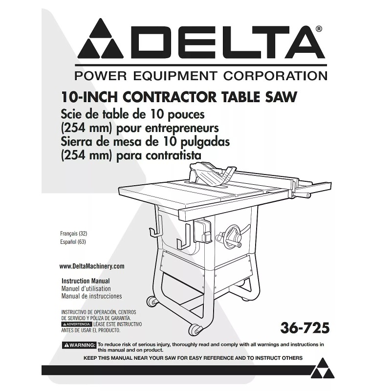 Delta 36-725 10" Contractor Saw Instructions Manual