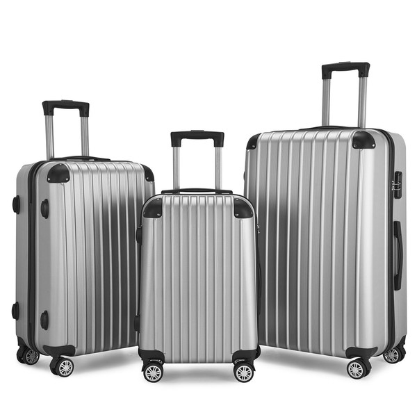Delutaos Luggage Set 3 Piece Expandable Lightweight Spinner Suitcase with Corner Guards (Light silver, 20/24/28)