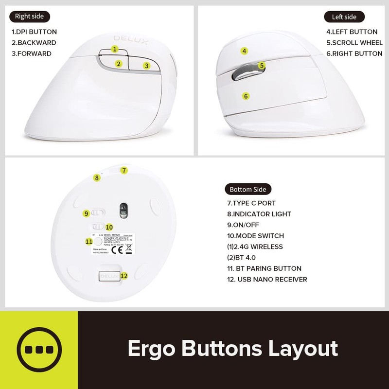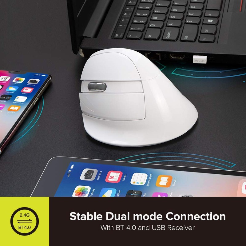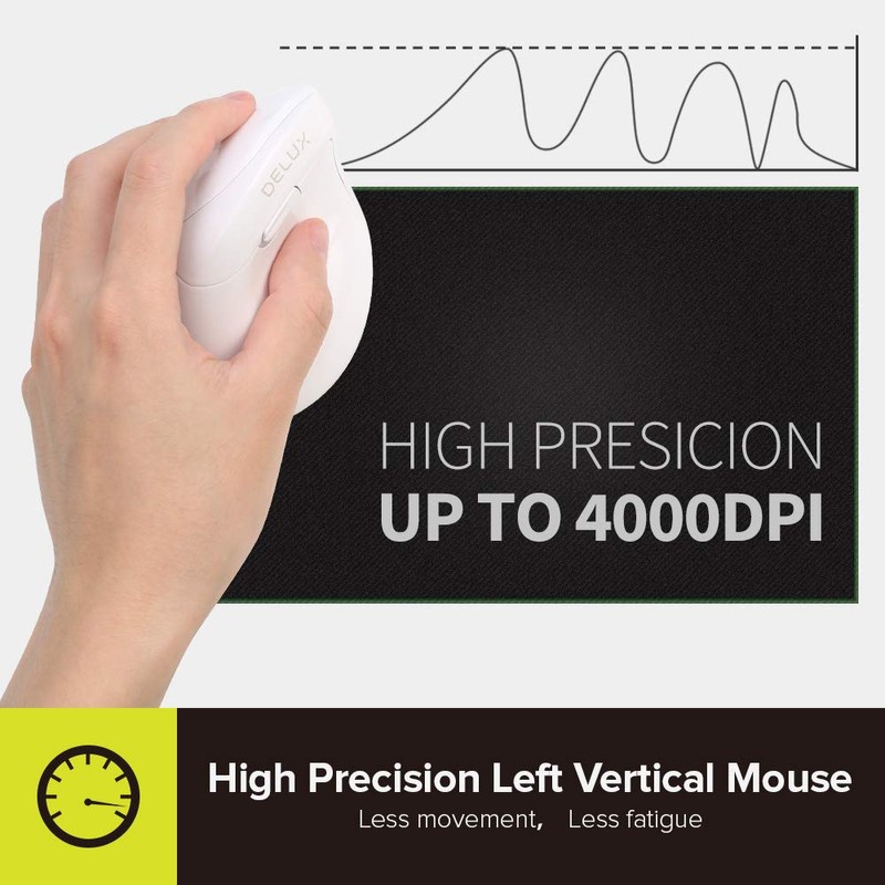 DeLUX Left Handed Ergonomic Mouse, Mini Wireless Vertical Mouse, Silent Click, 4000 DPI, RGB Light, 6 Buttons, Rechargeable, Bluetooth/2.4G/ Wired Tri-Mode for Laptop/PC/Mac (M618ZD-White)