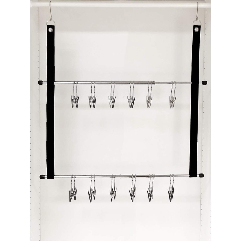 - NEW System HOLDS EVEN MORE BOOTS & ACCESSORIES! (Using the side hooks on each of the vertical rods and additional boot hangers, sold separately, you can hang up to 24 pairs of boots.) Takes up only 2.5 feet horizontal closet space and MAXIMIZES STORAGE by utilizing existing closet rod and creating two extra levels of hanging space. Holds more than DOUBLE the boots that other systems hold and costs less!