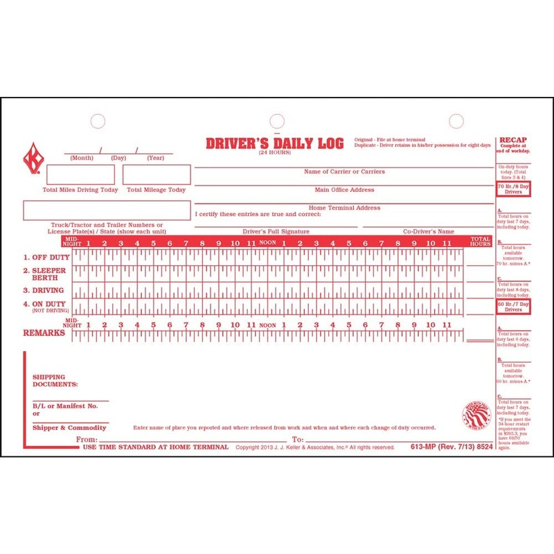 • DOT log forms are 2-ply with carbon and measure 8.5" x 5.5".