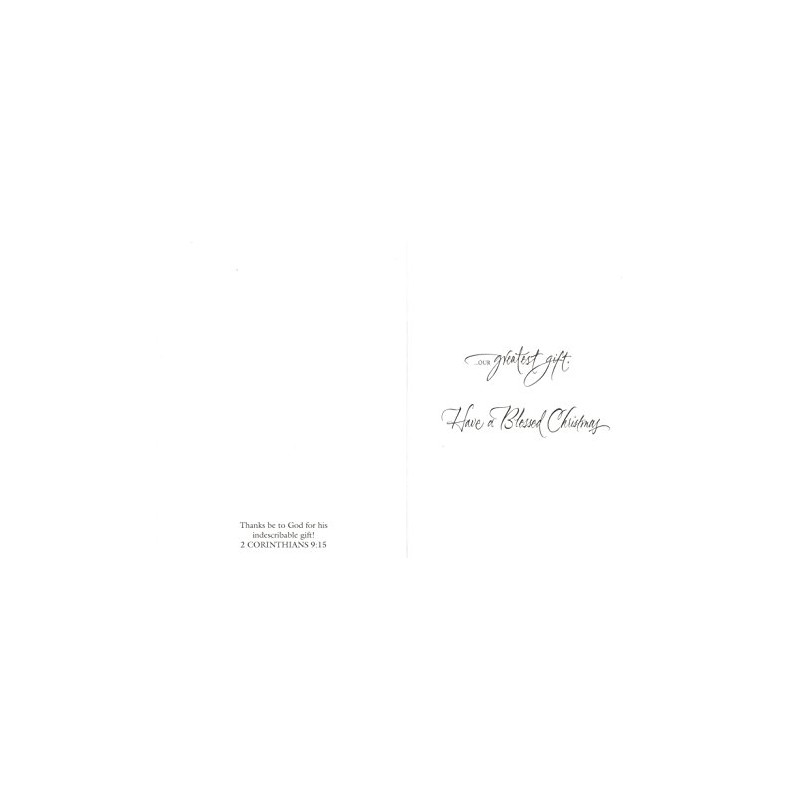 - Sentiment: Celebrate Jesus our light in the darkness our peace in the storm our hope for eternity... Inscription: ...our greatest gift. Have a Blessed Christmas. Scripture on lower left fold: Thanks be to God for his indescribable gift! 2 CORINTHIANS 9:15.