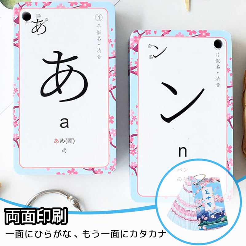 DELUXEFOX Hiragana Card, Japanese Study Card, For Foreigners, Easy to Carry, Flash Card, Japanese Language Study Card, Japanese Flash Card, Vocabulary Card, Ring Included