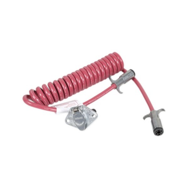 Expandable coiled wiring cables that connect the electricity from the motorhome to the towed vehicle. Cable has vinyl coating and all plugs are silicone-injected to limit corrosion and moisture. Designed to withstand the elements and rigor of every towing situation. Demco's coiled wiring cables expand to over 7 ft. in length and contract for storage when not in use. Each kit contains one coiled wiring cable, two male connectors and two female connectors.