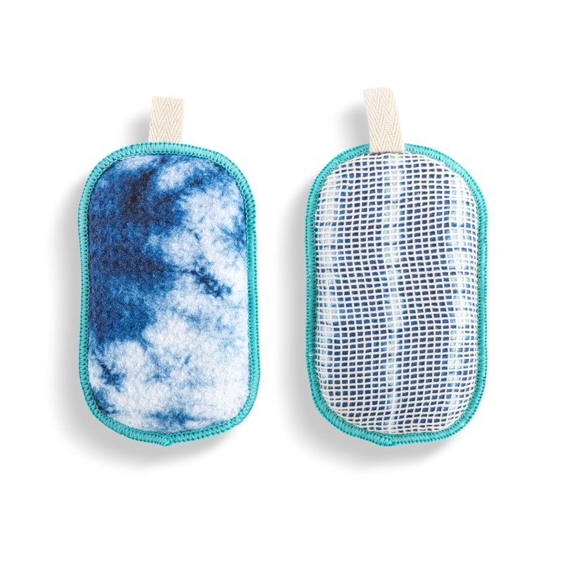 - Effortlessly tackle your cleaning needs with this stylish and functional cleaning sponge; Features an indigo tye dye pattern