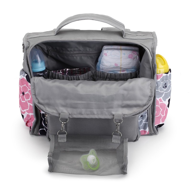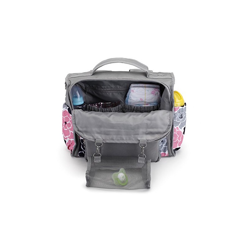 - Converts from a messenger bag into a backpack. Includes a changing pad, wipe holder and removeable storage bag