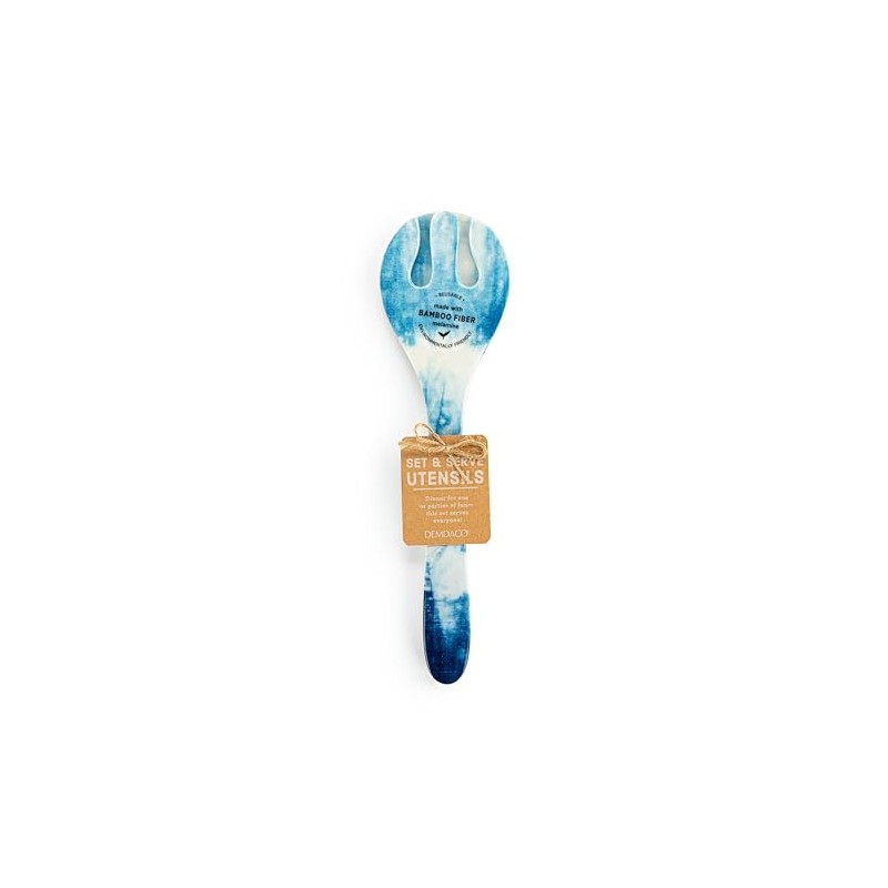 DEMDACO Tie-Dye Pattern - 11 Inch Blue/White Melamine Spoon Fork Salad Server Set