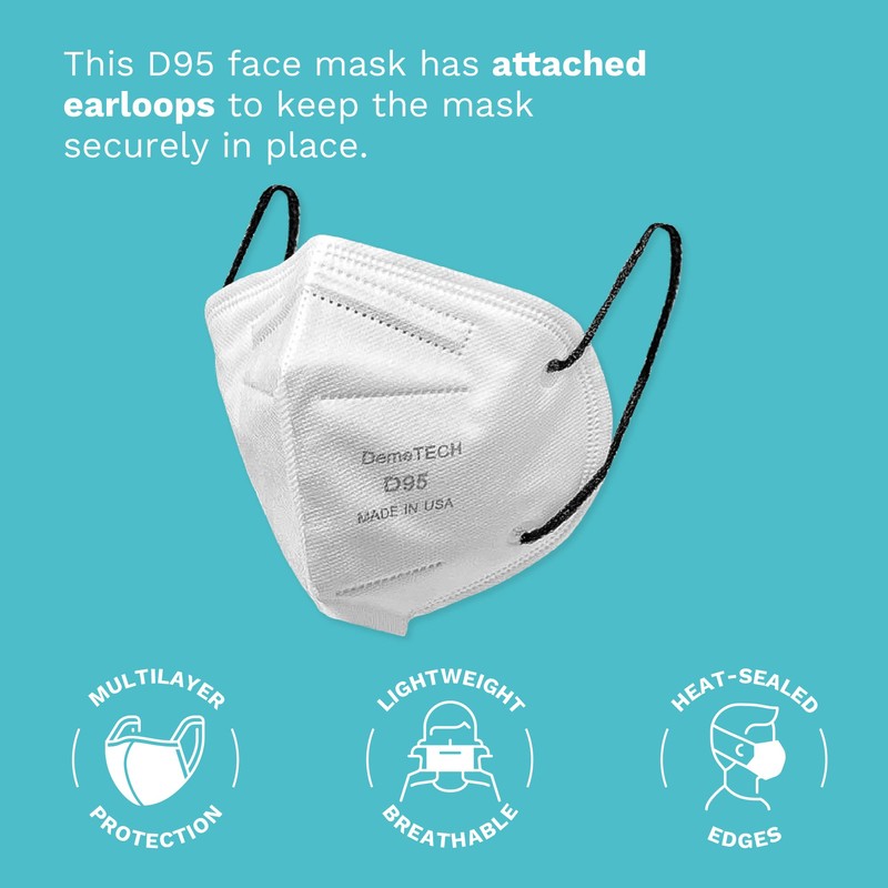 • DISPOSABLE PARTICULATE RESPIRATOR: At DemeTECH, your safety is our top priority. Our American-made particulate respirator mask uses only the highest-quality materials and slides over your ears to stay securely in place.