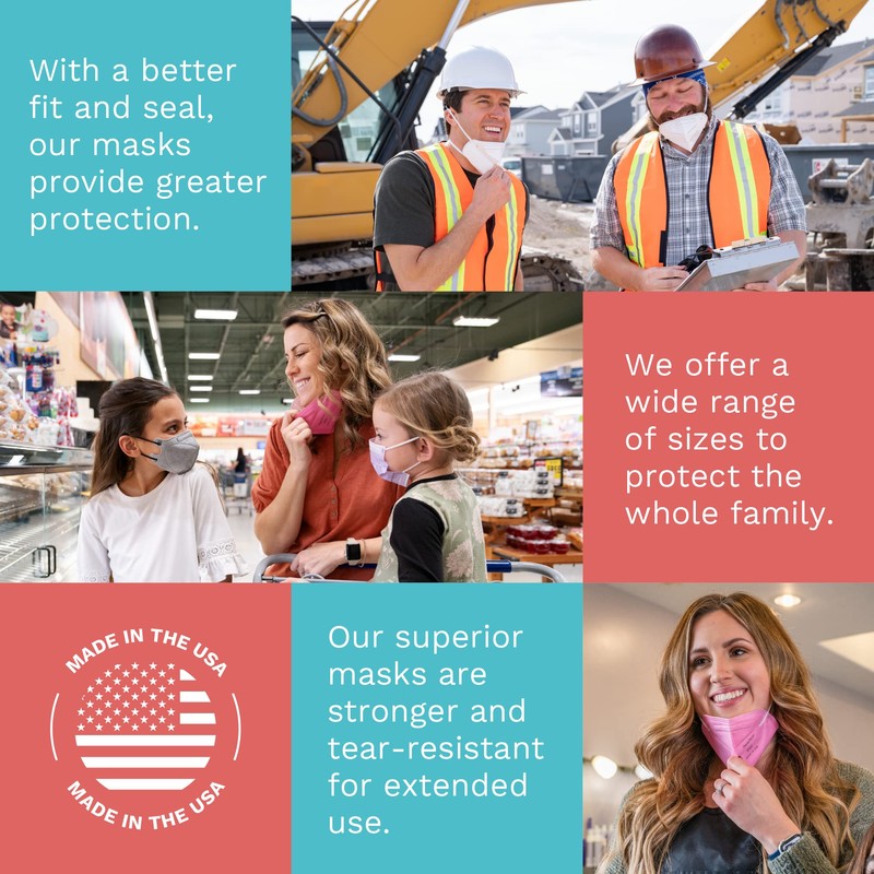 • MADE IN THE USA: Our high-grade PPE mask is 100% manufactured in the United States, produced at our factory in Miami, Florida, and shipped from the same facility. Wear it everywhere, from the doctor’s office to a night on the town. This respiratory mask is also great for traveling.