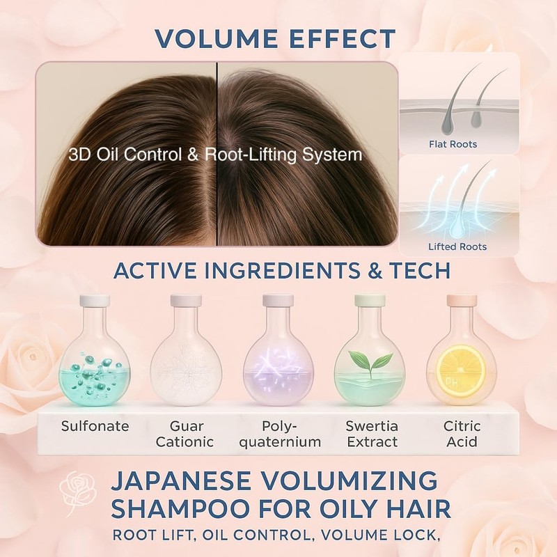 Advanced Oily Hair Shampoo & Volumizing Beauty Solution with Rose Fragrance