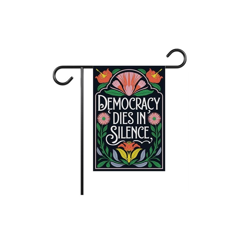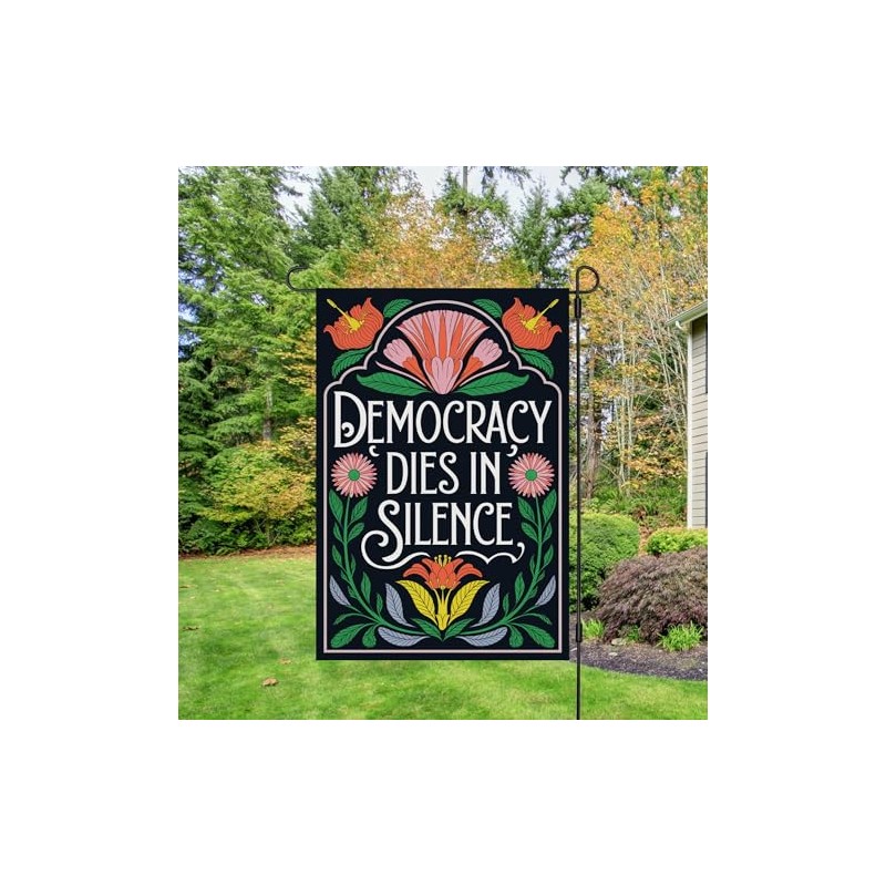 Democracy Dies In Silence Garden Flag - Anti Maga Democrat Yard Sign - Social Justice - Resist Fascism - Political Flag - Idea Outdoor Decoration And Garden Terraces - Yard Banner 12X18 Inch