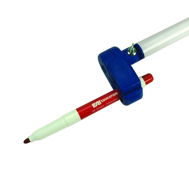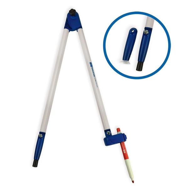 - Includes one end with suction cup for stability, and two other interchangeable tips: one rubberized tip for basic demonstration, and one spring-loaded adapter that will hold a dry-erase marker for demonstrating arcs, circumference, and more on a white board.