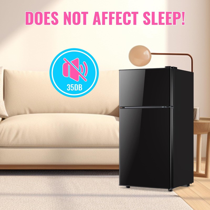 - Dual Door Convenience – Keep Food Fresh & Frozen Items Ready. This mini fridge features separate refrigerator (1.6 cu. ft.) and freezer (0.8 cu. ft.) compartments, giving you the best of both worlds. No more sacrificing freezer space for fresh groceries—store frozen meals, ice cream, and beverages without crowding. The dual-door design prevents odor transfer, keeping your snacks tasting fresh.