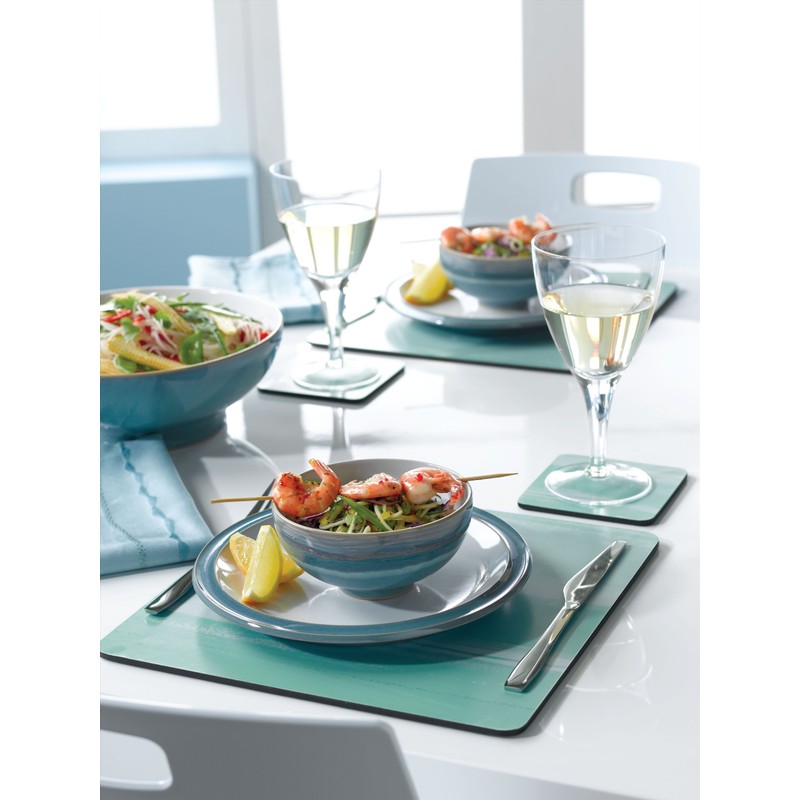Bring the Mediterranean to mind with the cool aquamarine tones of Denby Azure. Add accented pieces from the Azure Coast range to bring a touch of summer to your table, whatever the weather. Anyone who owns Denby will tell you how versatile it is and how good it feels. Every piece has been designed for cooking, serving and eating food � from the �gravy rim� on our plates to the space on our saucers for biscuits. Our tableware is made for real food, not just for show. It�s for sharing, for fingers, for chopsticks, for barbeques, for kitchens�you choose. Denby can handle itself in the busiest kitchens. From the smallest cup to the biggest casserole, all our pieces can be used with confidence in the microwave, dishwasher and freezer. We've got over 5000 glazes, all harder than steel. It's taken us 180 years to get our glazes as flawless as they are, meaning our tableware washes more easily, but chips less easily. Denby is smashing stuff! Our tableware is really much harder to crack than other tableware. Each Denby piece is unique. It passes through 25 pairs of hands before reaching yours, including a test to make it as comfortable as possible to hold.