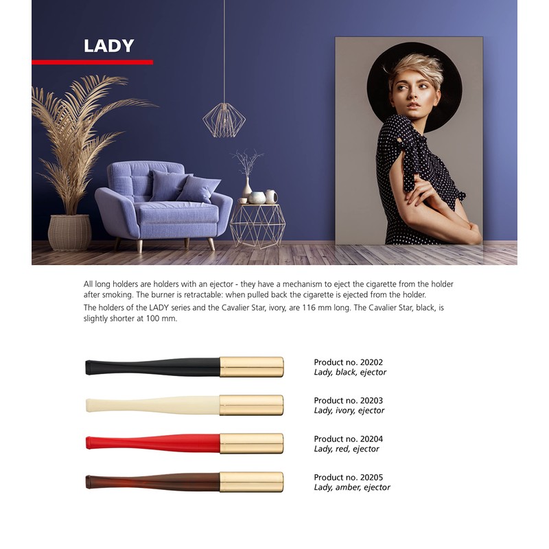 - THE PERFECT LENGTH - The Denicotea Lady Ejector Holder is the perfect length and size. It is ergonomically designed to fit comfortably in your hand, and at 116mm it is also the perfect length