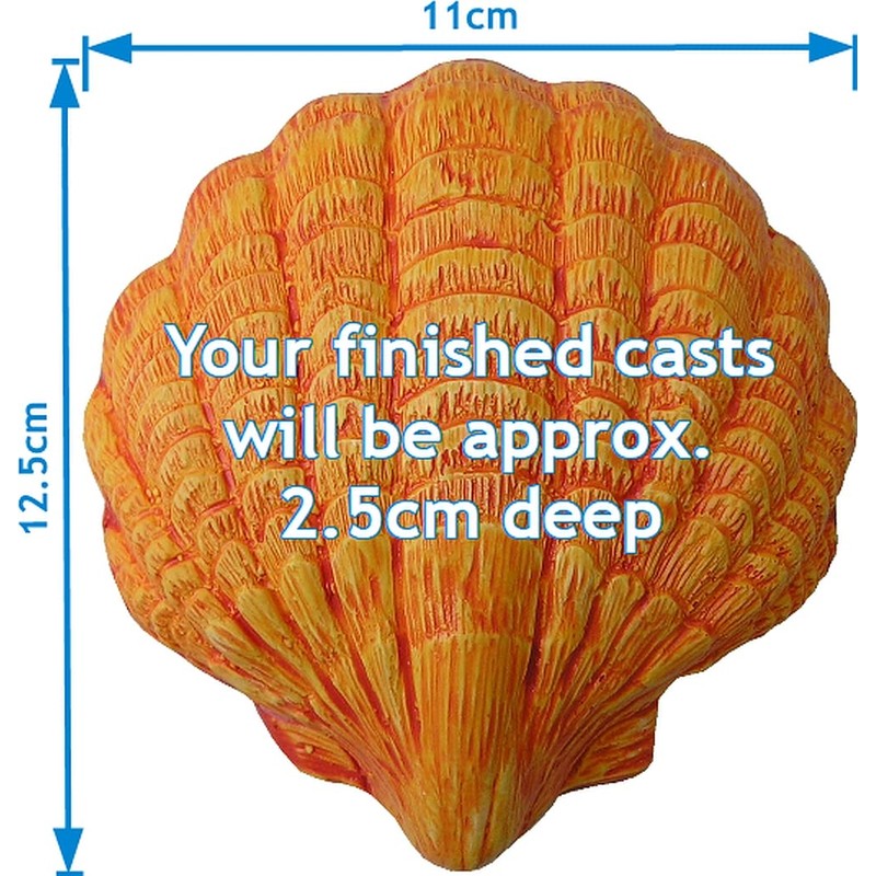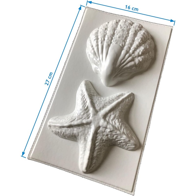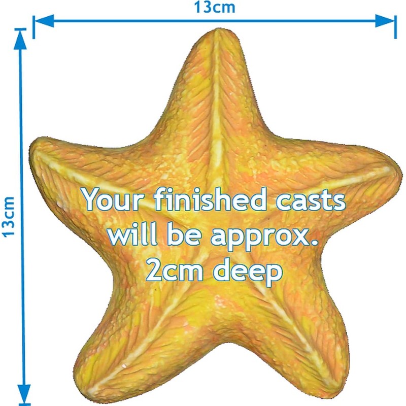 - SHELL and STARFISH Concrete or Plaster Mould. Make your own concrete garden stones or plaster plaques with this REUSABLE mould. Each shell you make will measure approx. 12½cm x 11cm and they will be approx. 2.5cm deep. Each starfish you make will measure approx. 13cm x 13cm and they will be approx. 2cm deep.