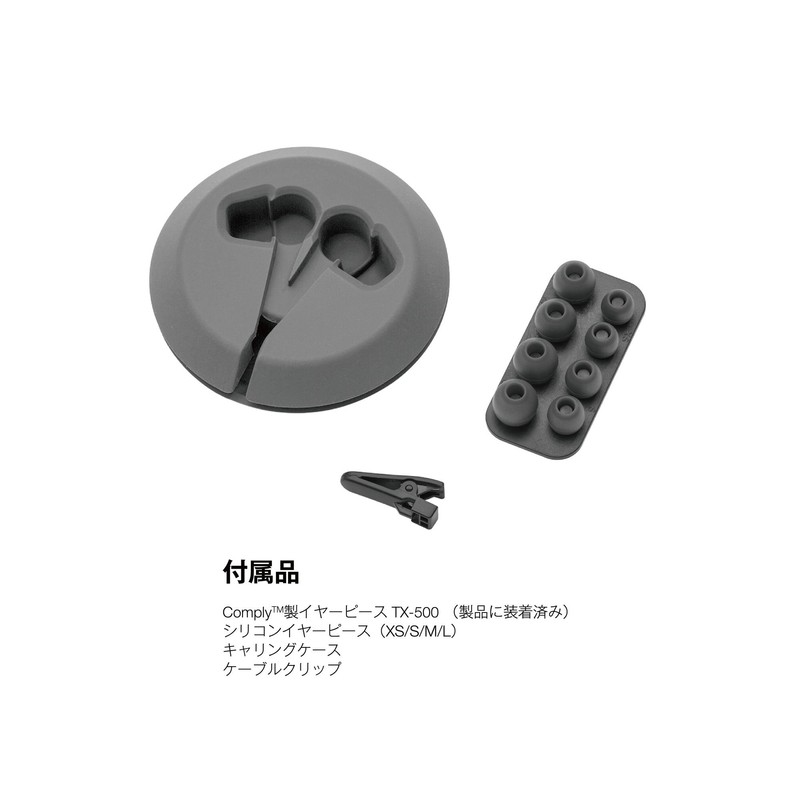 - Newly developed carrying case with 4 sizes of silicone earpieces (XS/S/M/L) for easy storage