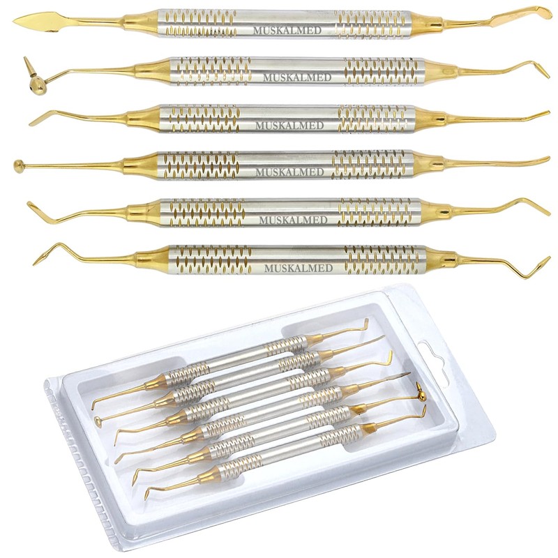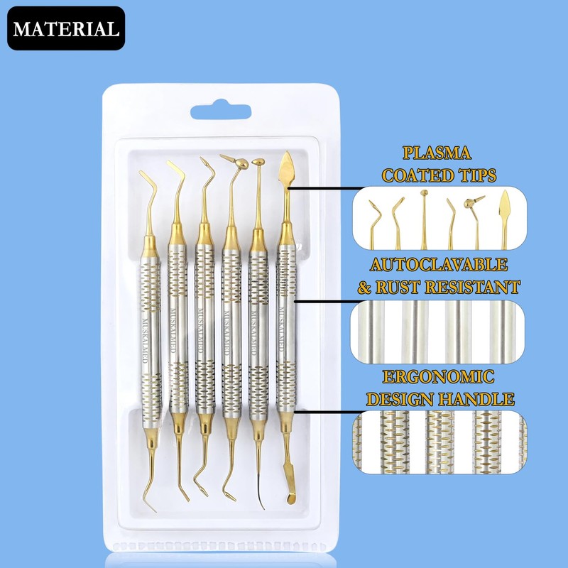 Dental Composite Filling Instruments Professional Dental Filling Repair kit Permanent Composite Dental Titanium Dental Gold Plasma Coated Tips Non Stick Restoration Smooth Tooth Filler 6 PC DS-1620