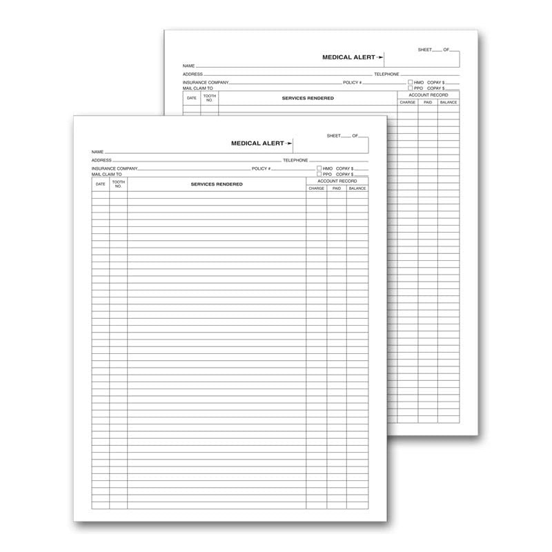 Basic dental record with ruled front and back, great for documenting exam or treatment notes and account information. Great for additional notes! Printed in black ink on 32# white ledger stock. Ruled back for additional notes Shrinkwrapped 50 per pack. (2 packs per order)