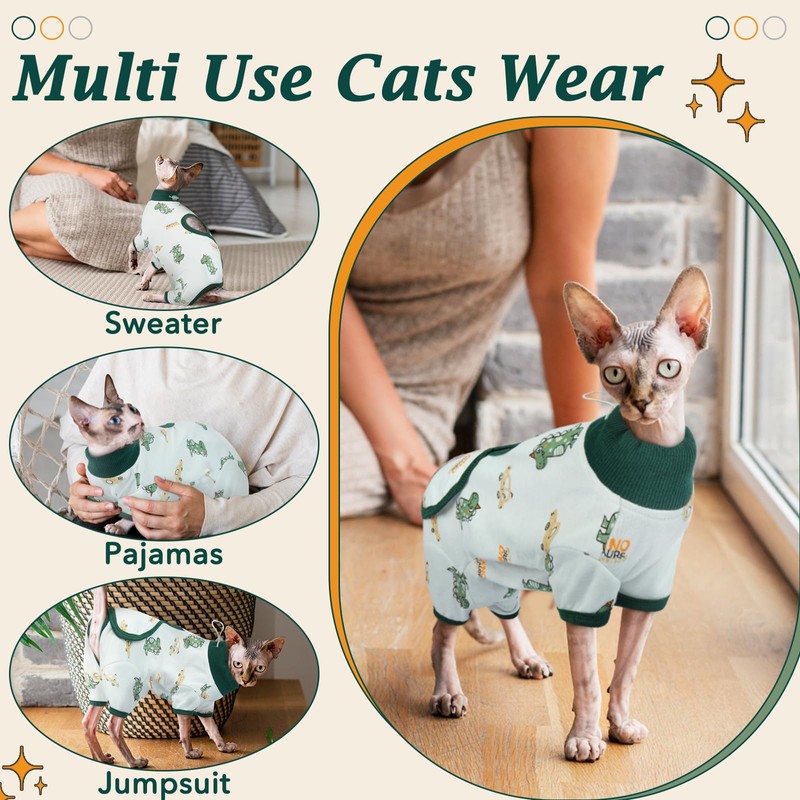- 【Premium Soft Cotton Material】Hairless Cats have no fur they lose more body heat than coated cats, so their skin is very Sensitive and Vulnerable. DENTRUN hairless cats suit clothes after surgery are made of 100% pure cotton and have been specially softened to make the whole clothes very comfort. Slim-fitting style are perfect fit cats body and high-stretched fabrics are perfect for Sphynx Cat, Devon Rex Cat, Cornish Rex Cat, Peterbald Cat.