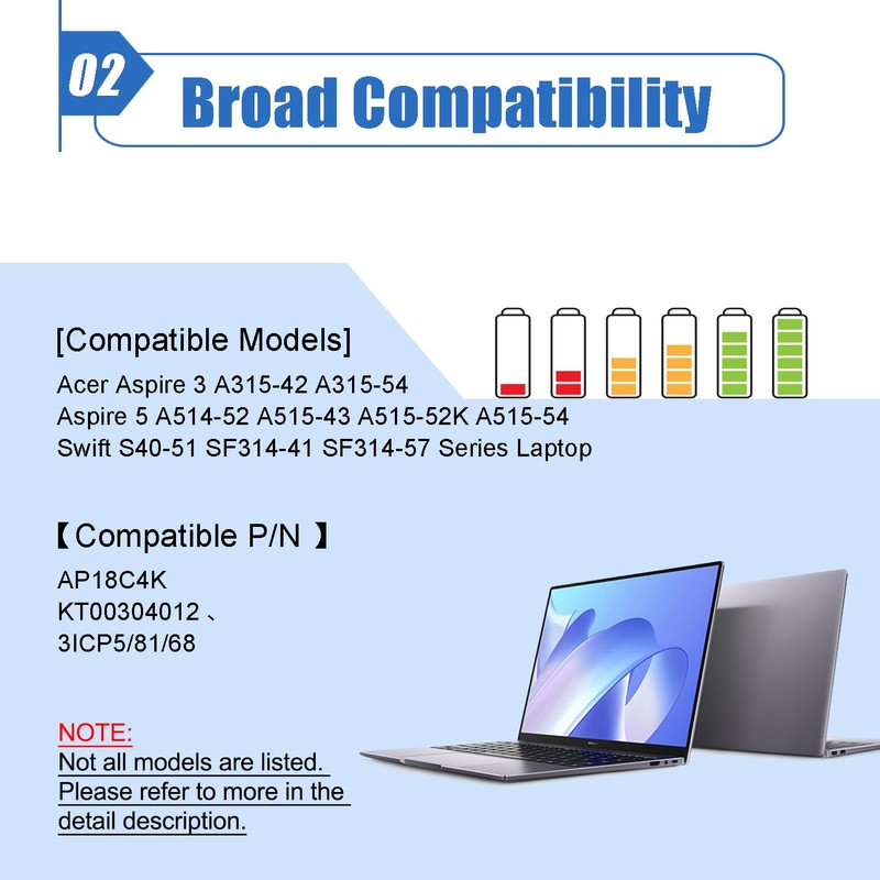 - Compatible with Machines Model: Acer Aspire 3 A315-42 A315-54 Aspire 5 A514-52 A515-43 A515-52K A515-54 Swift S40-51 SF314-41 SF314-57 Series Laptop