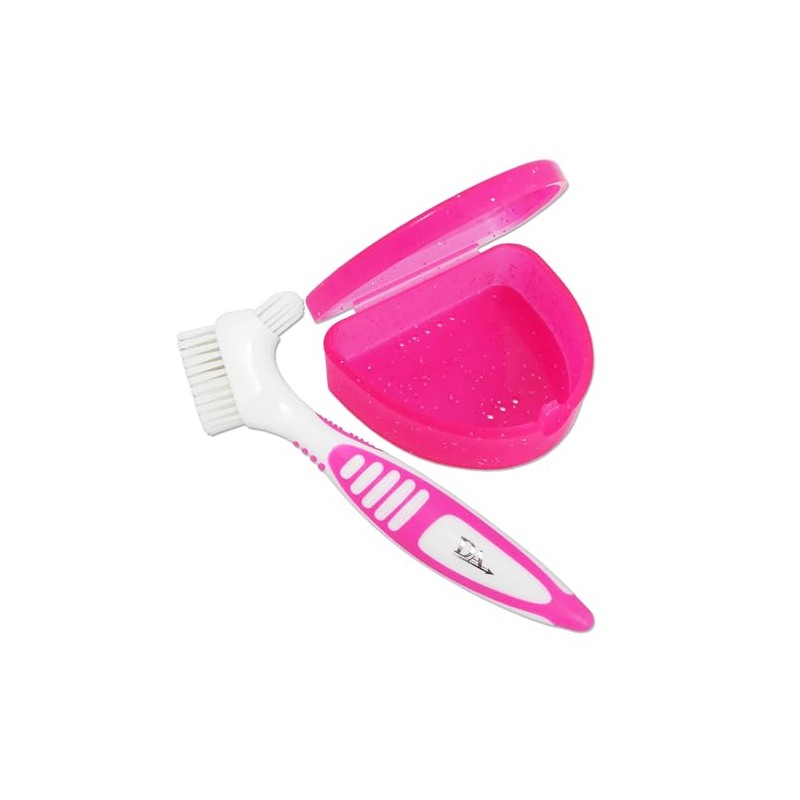 - Denture Brush: Two nylon bristle shaped heads clean all surfaces