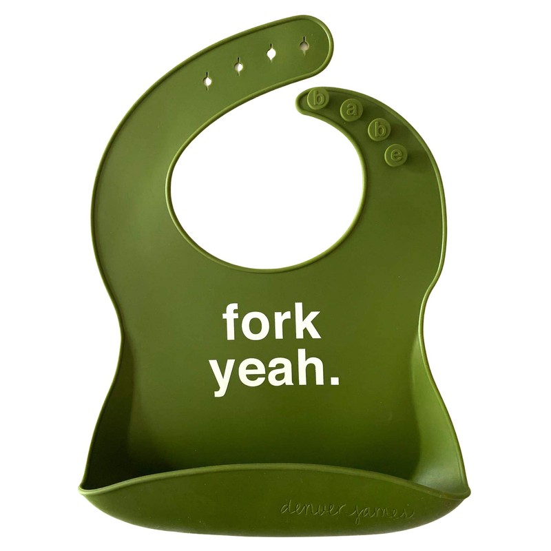 Denver James silicone bibs keep your babe clean with our witty saying collection of silicone rubberized bib material. Designed in California, these food grade silicone BPA and phthalate free bibs capture food while keeping your little one’s outfit clean. Featuring rounded, built-in neck fasteners for a snug and comfy fit with a deep front pocket perfect for catching food, keeping your baby and surrounding area clean. Easy to clean, our silicone bib resists stains and do not absorb water. Can be washed with soap or placed in dishwasher on the top shelf for easy cleaning. NEUTRAL COLORS + FUN SAYINGS - Shop your favorite neutral color + witty saying today!