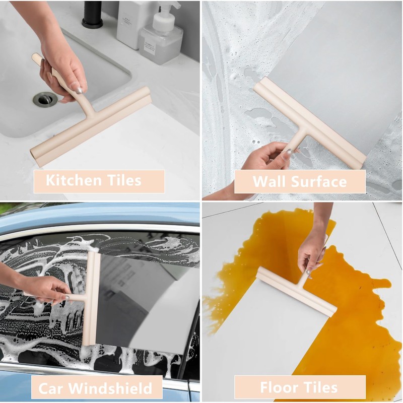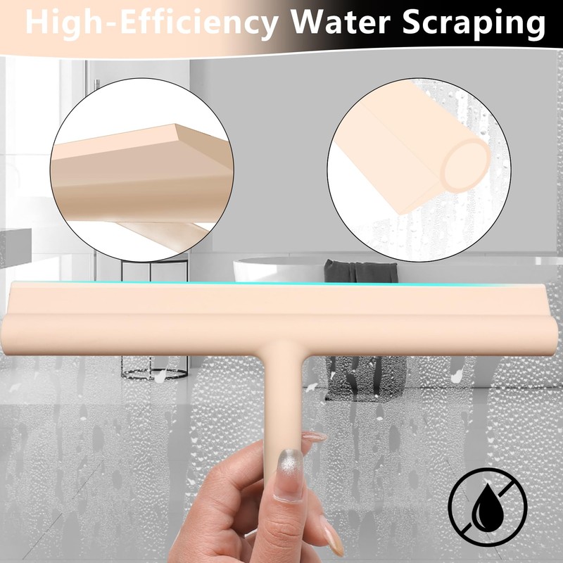 - Full Silicone Jacketed Squeegee: This squeegee features a high-quality silicone-coated design. Its soft silicone surface prevents scratches, and the heat-resistant material won't deform even after long-term use. Specifically designed for wet environments such as bathrooms, it is rust-proof, corrosion-resistant, and long-lasting