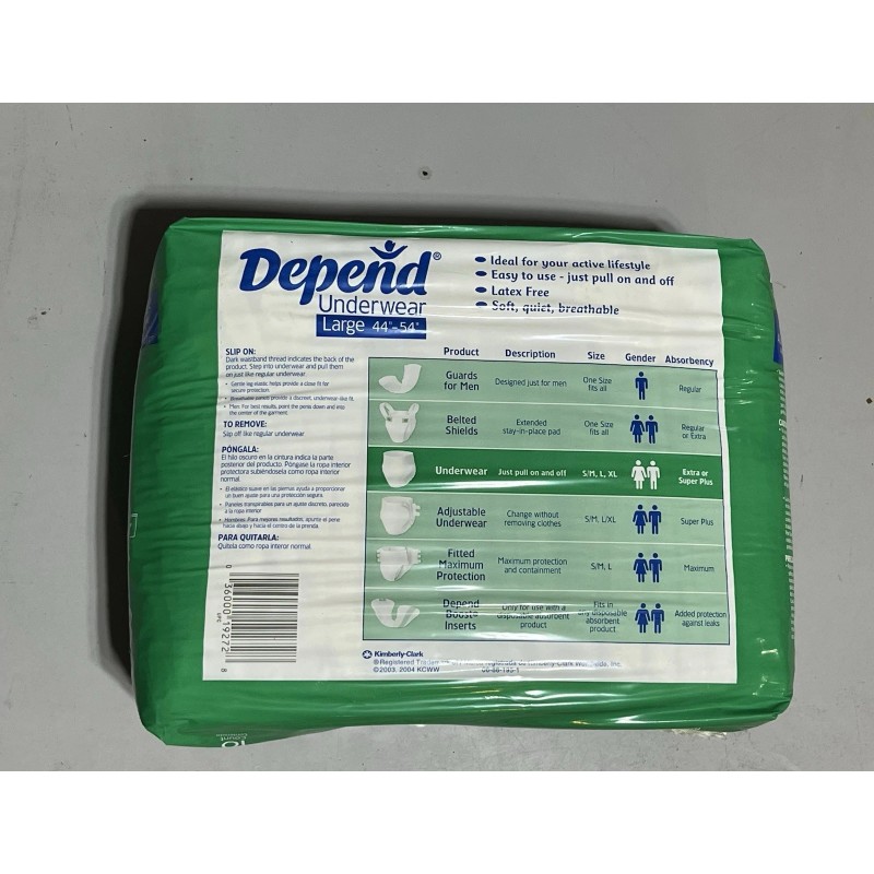 Depend 2004 Depend Extra Absorbency Underwear 18 Count Unisex size Large