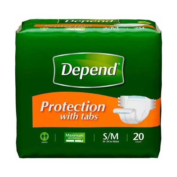 Adult Incontinent Brief Depend Tab Closure Disposable Heavy Absorbency ''Small/Medium, 19 - 34 , 20 Count'' 2 Pack