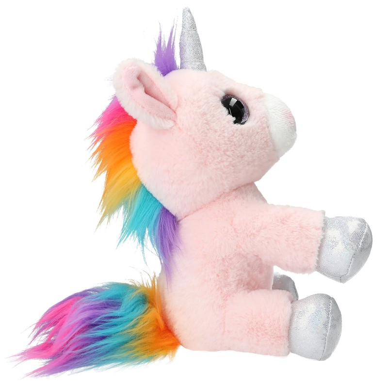 Depesche 12278 Ylvi Cuddly Toy Unicorn in Pink with Rainbow Mane, Approx. 21 cm Plush Toy with Glitter and Silver Accents