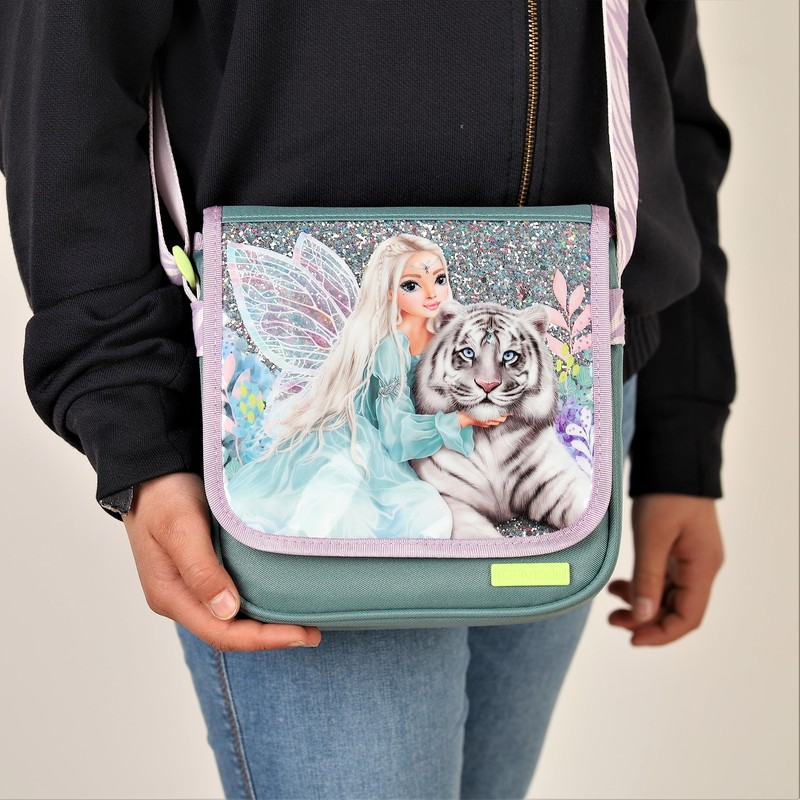 Depesche 12496 TOPModel Fantasy Tiger - Umhängetasche in Lavendel und Petrol, kleine Tasche mit Reißverschluss und längenverstellbarem Tragegurt