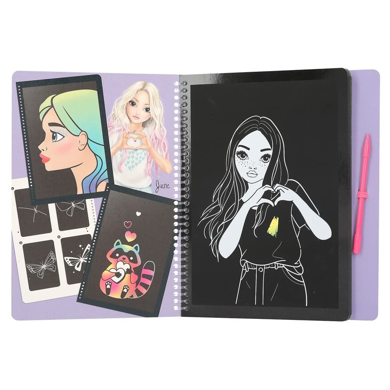 - Creative book with many scratch motifs of models, dogs, animals and much more, with dark coating and colourful colour gradient