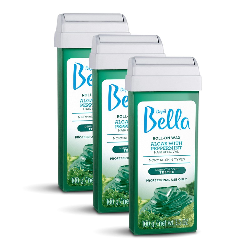 Depil Bella Roll On Wax Algae with Peppermint Depilatory | Body Waxing, Hair Removal Wax-Cartridge | For Men and Women | Home Self Waxing | Sensitive Skin | Dermatologically Tested | Painless (3 PACK)