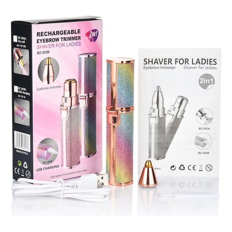 - Depiladora Facial 2 en 1: Esta Depiladora eléctrica proporciona dos tipos diferentes de cabezales de corte para satisfacer las necesidades de belleza de diferentes partes del cuerpo. Se puede usar no solo para recortar las cejas, sino también como un depilador facial. El cabezal de corte es fácil de cambiar, perfecto para cejas, vello facial, vello labial, vello nasal, brazos, piernas, espalda, axilas, bikini, etc.