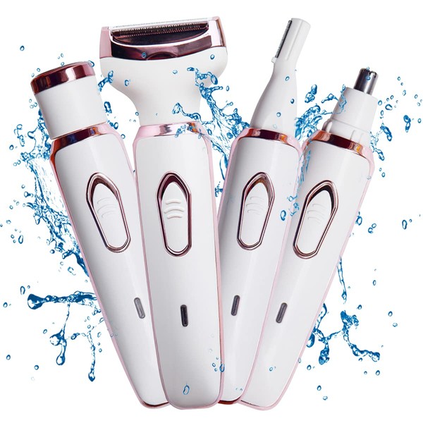 Depiladora para Mujer 4 en 1,Recargable Eléctrica Depiladora,USB Recargable Impermeable Portátil,Depiladora para Ceja Trimmer Nariz Axila Pierna Del Brazo,Rasuradora Femenina (Blanco)
