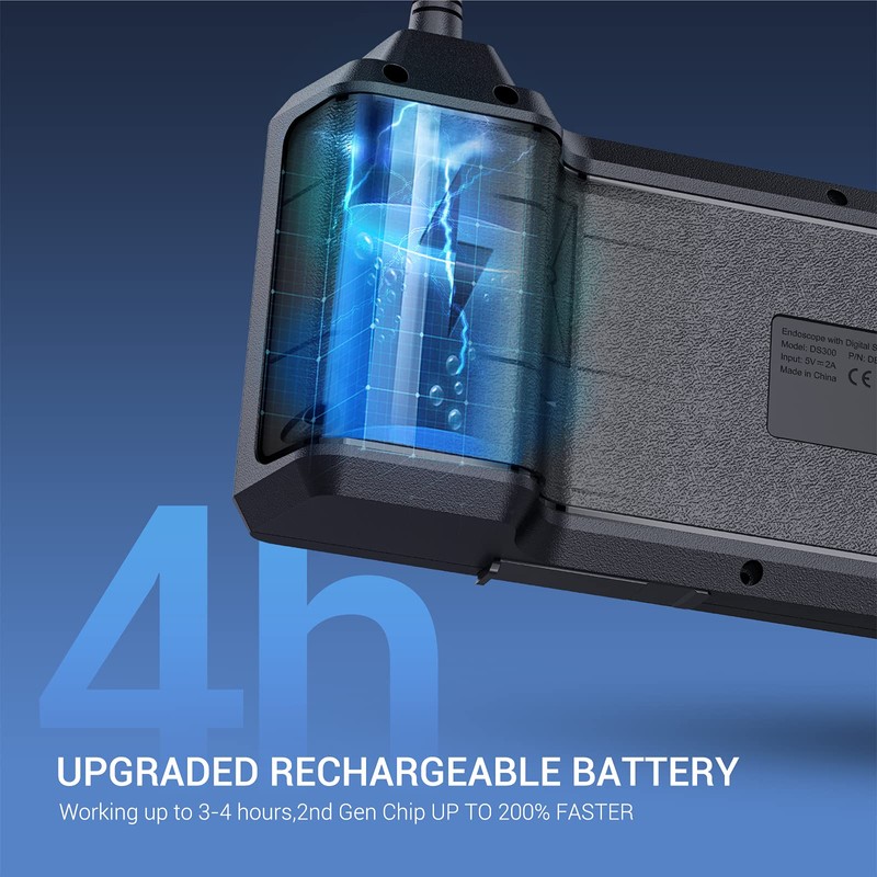 4. Built-in rechargeable battery can work up to 4 hours. Standby time even up to 6 months. IP67 waterproof camera, perfect tool for HVAC inspection, vent pipe, machine equipment, engine, automotive, boat, parts assembly, construction sites, Wind Turbines, aircraft inspection. Fully meet your daily needs.