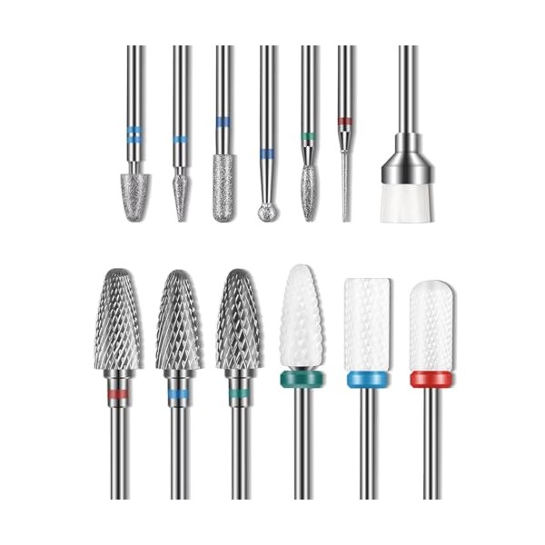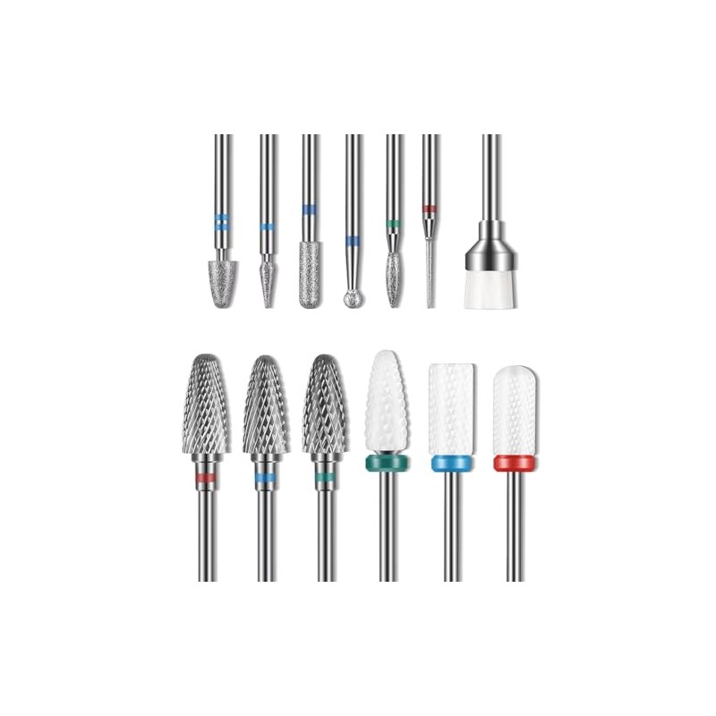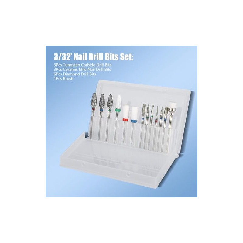 Depvko Depvko 13PC Nail Drill Bits Set, Drill Bits for Nails, 3pcs Tungsten Carbide Drill Bits+ 3pcs Ceramic Efile Nail Drill Bits+ 6pcs Diamond Drill Bits+ 1pcs Brush, 3/32 inch Nail Bits for Nail Drill