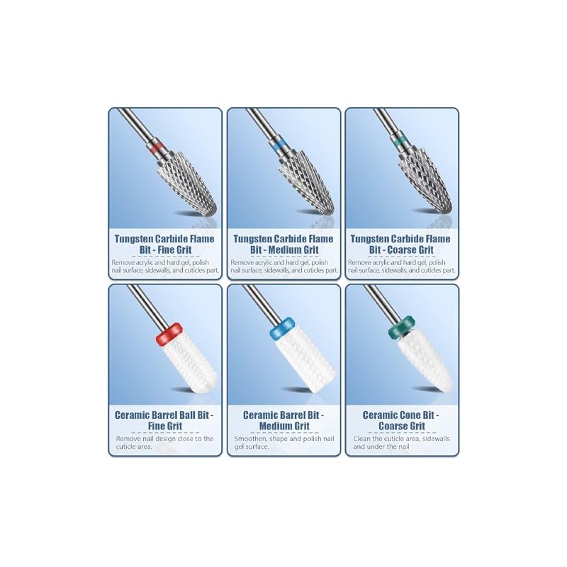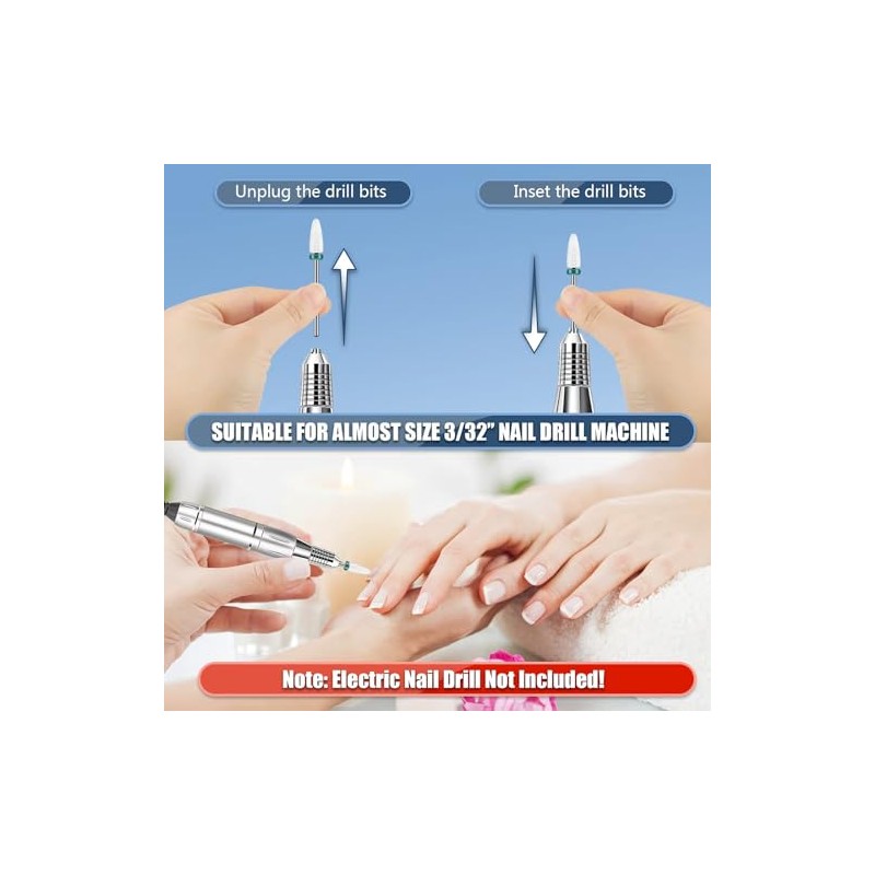 • VERSATILE: Universal /-inch nail drill bits fit most electric or rechargeable manicure nail file machines. Perfect for nail salon, beauty parlor, spa or personal manicure pedicure, DIY nail art at home