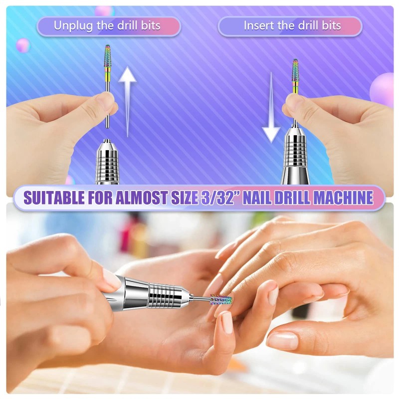 What You Will Get? 1pc 5 in 1 Purple Nail Bit(Fine) 1Pc Tapered Barrel Carbide Nail Bit(Medium) 1Pc Cone Shape Carbide Nail Bit(Fine)|Shank size: 3/32"