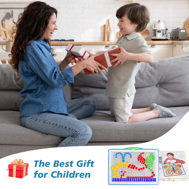 - Mosaic games: Promotes children's creativity and fine motor skills by assembling colourful shapes with nails.