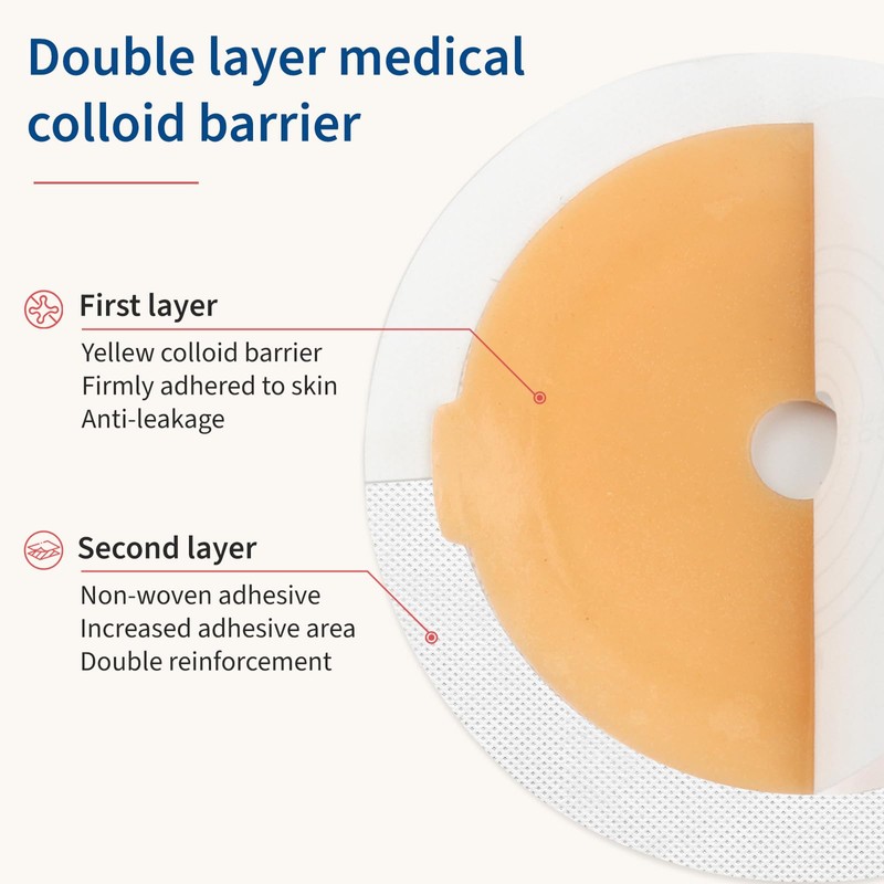 - Double chassis design: the stoma barrier chassis uses hydrocolloid and non-woven fabric adhesive and provides double adhesive power. Whether during daily activities or nightly rest, it sticks firmly to the skin and reduces the risk of leakage