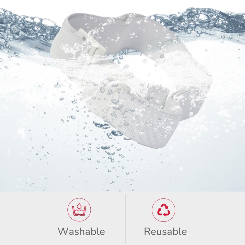 Made from washable elastic material, the wide and soft belt is designed to be comfortable and prevent rolling, while also being adjustable to fit all sizes.