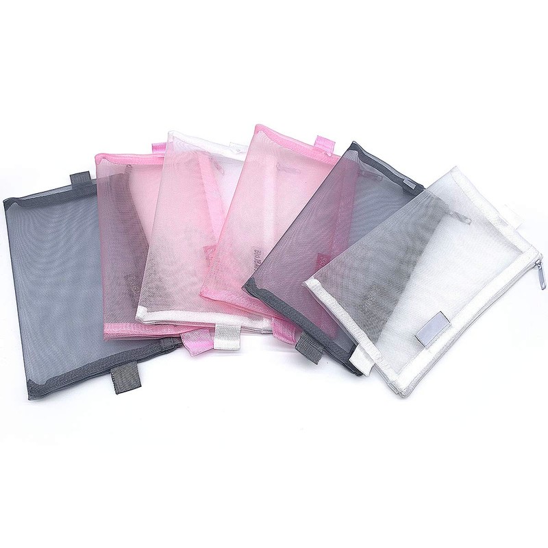 Derbway Pack of 6 Pencil Cases, Three Colours, Large Capacity Mesh Pencil Case with Zip, Makeup Bag, Pencil Bag for School and Office (Large), Grey, pink, white, No