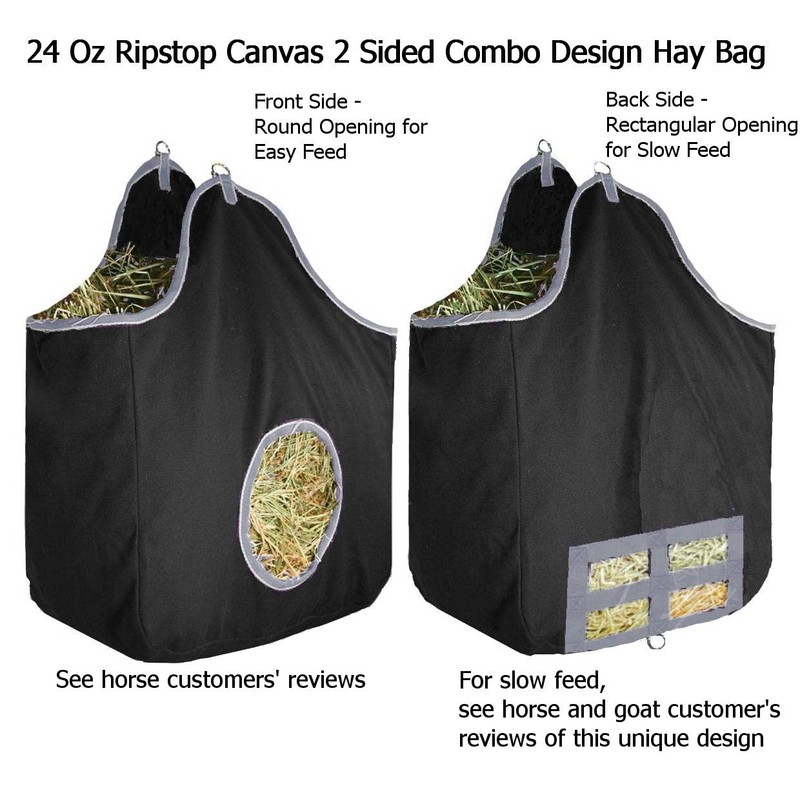 - STURDY LIGHTWEIGHT CONSTRUCTION – these hay bags are made of a durable canvas material, with strong, durable reinforced stitching at every seam.
