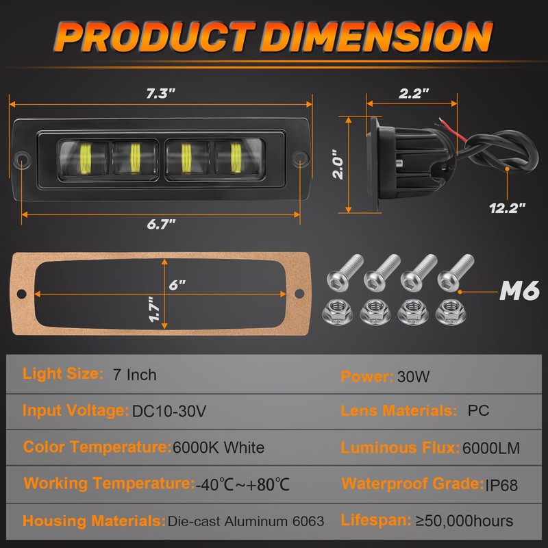 - Easy Installation: Come with a paper model that you can accurately confirm hole size and mounting position. Package included: 2PCS Flush Mount LED Light Bars, Paper Template, Necessary Accessories. Please do not hesitate to get in touch with us if you have any problems, we will respond as soon as possible.