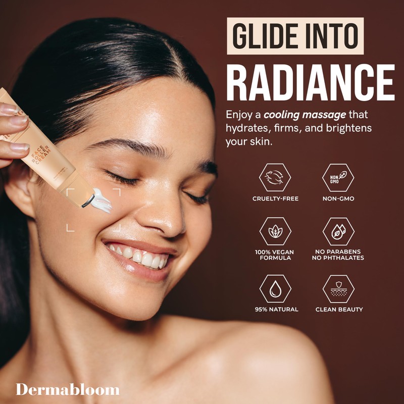 Dermabloom Vitamin C Face & Neck Roller Cream - Skin Firming & Tightening - Dermatologist Tested, Anti-Aging Korean Skin Care, Evens Skin Tone, Reduces Wrinkles & Hydrates - Clean Beauty - 1.69 FL. Oz