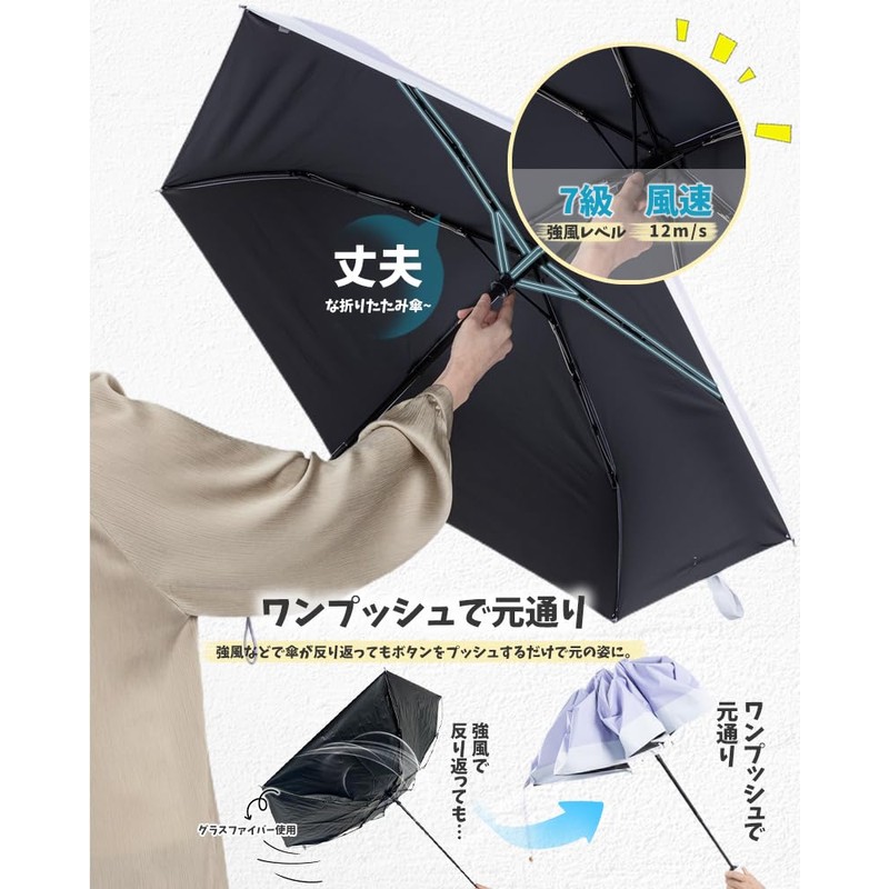 • (Durable 6 Ribs, Highly Durable) This folding umbrella has improved wind resistance and durability. The umbrella frame is made of both flexible and strong, and the anti-rust treated umbrella frame is super strong and rust resistant, with 6 ribs to provide a balanced support. Also, the three-fold construction combines lightweight and durable, so it can be easily restored even if the umbrella flips inside out in strong winds