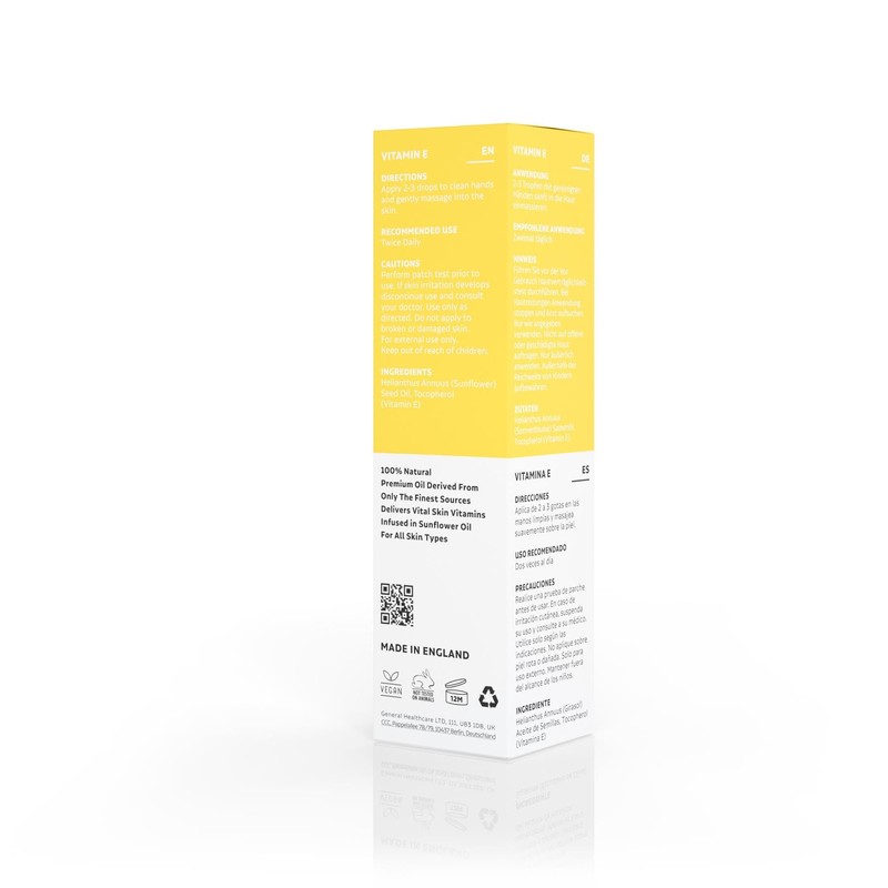 - Versatile for All Skin Types: Suitable for all skin types, our Vitamin E Oil works harmoniously to nourish and balance the skin's moisture levels. Use it as a standalone moisturizer or as an addition to your skincare routine for extra hydration.
